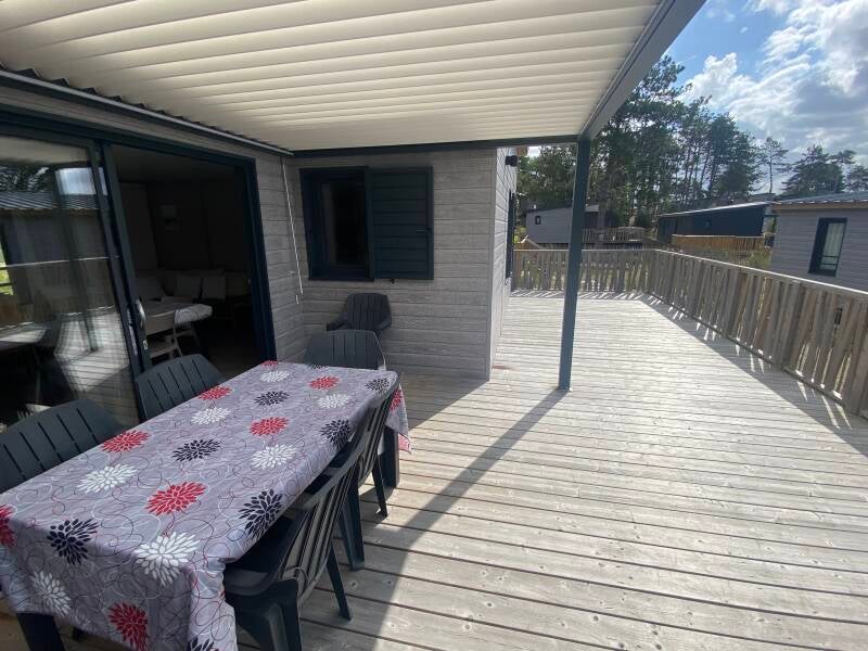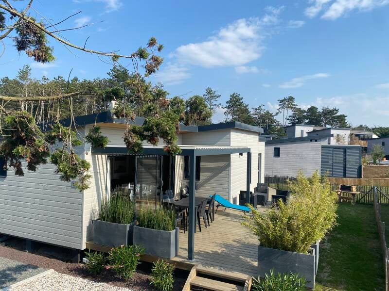 Ce chalet est situé à 150 m de la mer et 400m du centre de Jullou. Il est dans un parc de résidence de loisirs L 'Edune avec piscine couverte chauffée ,jeux extérieurs (pétanque, terrain de volley ball, tables de ping pong)